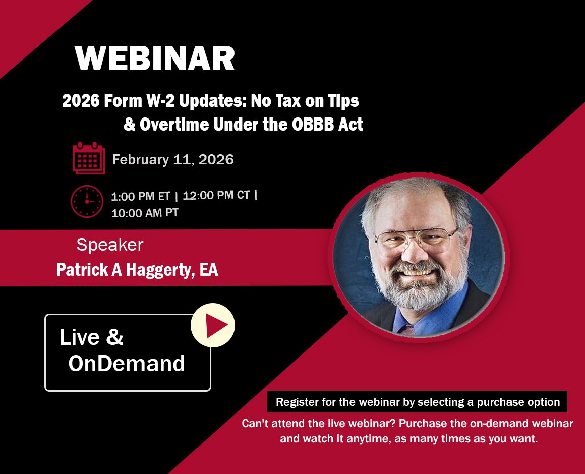 A major task of Payroll departments is providing W-2 Forms to employees and to the Social Security Administration. The Forms must be correct, complete, and filed on time or the employer may face stiff penalties. This webinar will discuss new reporting requirements and changes to the 2026 Form W-2 under the “No Tax on Tips” and “No Tax on Overtime” provisions of the One Big Beautiful Bill Act.