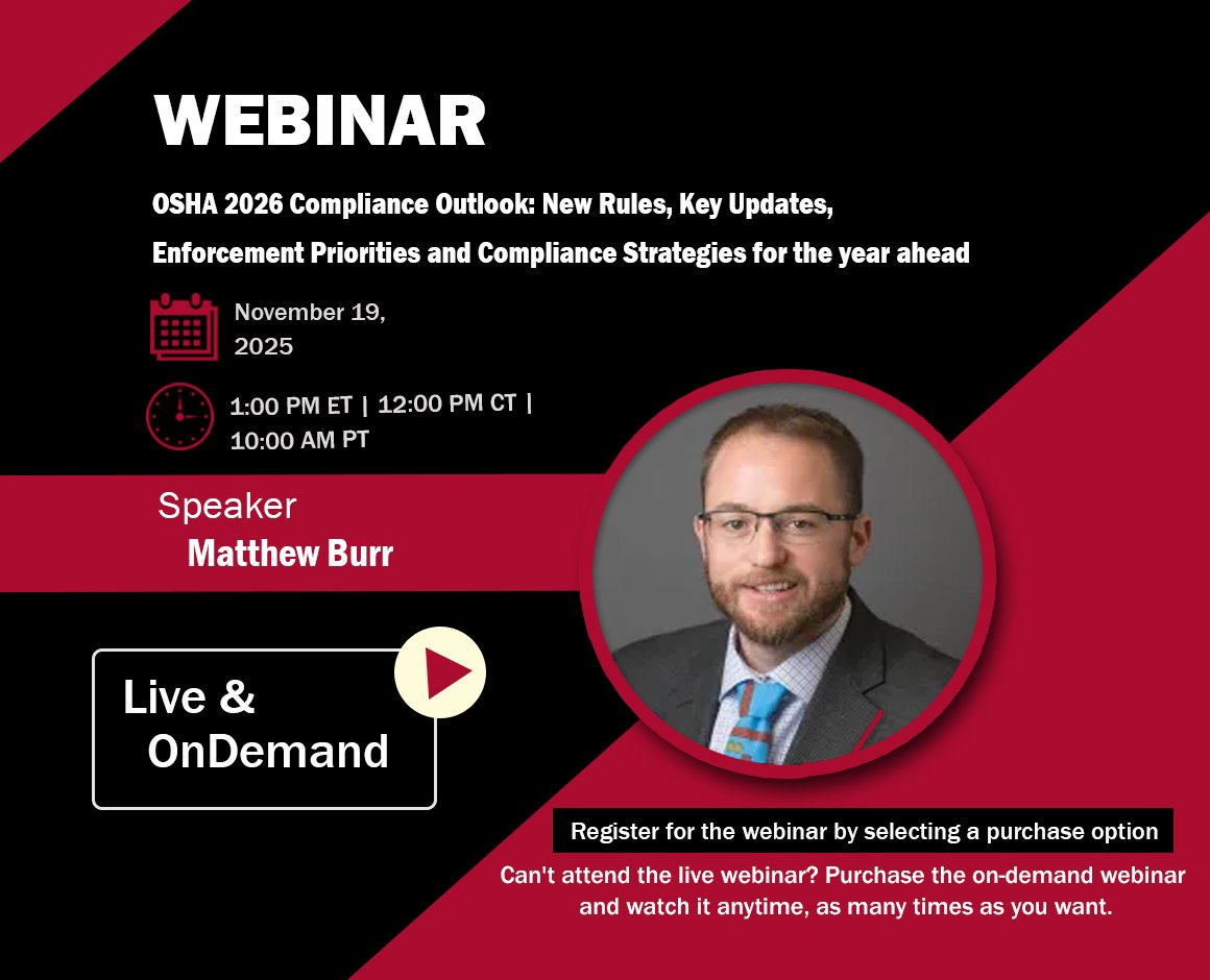 The OSHA 2026 Update & Enforcement Priorities webinar offers a strategic preview of what employers should anticipate from OSHA in 2026. This impactful session outlines the newest compliance developments, enforcement directions, and rulemaking priorities shaping the year ahead.